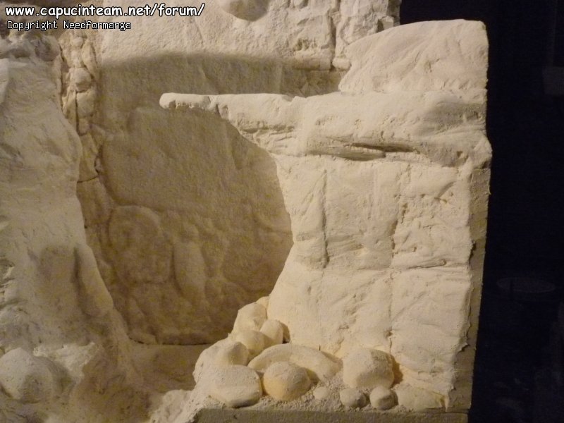 -pour combler les interstices entre les rochers moulés j ai utiliser aussi cet enduit en granulé , je soupoudre a l endroit que je veux combler et j humidifie les granulés avec une pipette a peinture , une fois sec cela donne un rendu proche de la terre qui s acumuler parfois dans les parois rocheuses